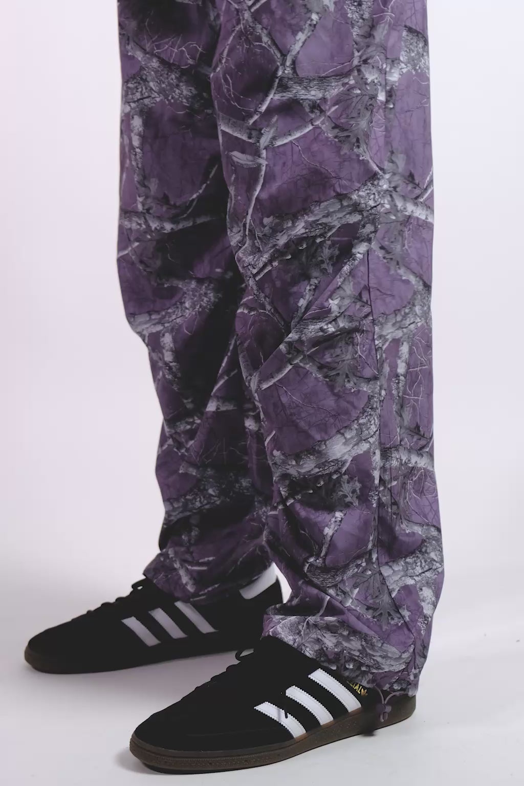 Notre pantalon Wasteland Camo est conçu dans un tissu camo violet, type 'realtree' en impression par sublimation. Ce pantalon est doté de deux stopper en bas et d'une ceinture à la taille pour l'ajuster.