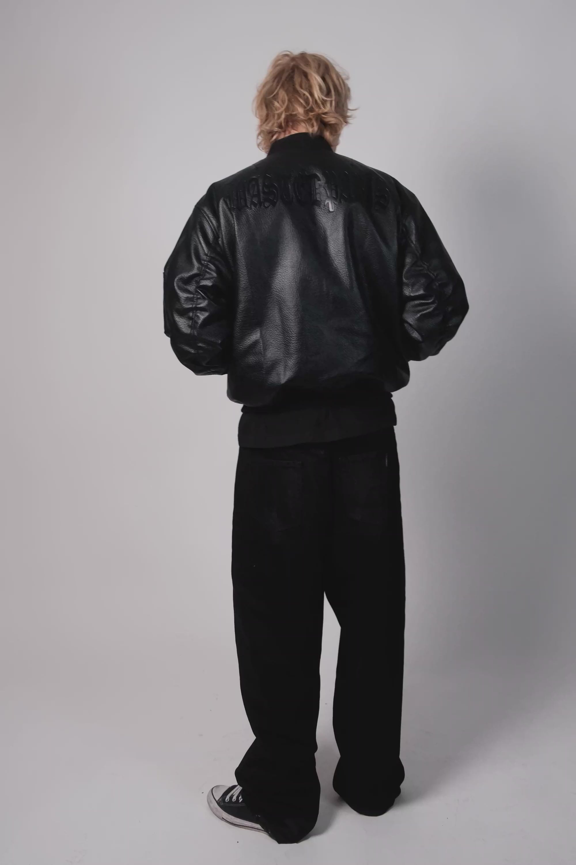 Notre Bombers Kingdom Curve est confectionnée en faux cuir. La doublure intérieure est orange avec un imprimé. La doublure de fermeture éclair présente 'Wasted Paris' en détail brodé, ainsi qu'un logo embossé dans le dos.